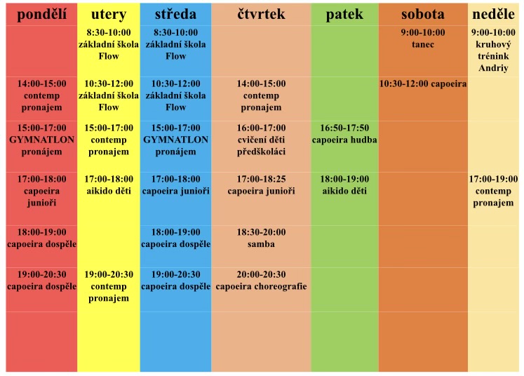 Jako alternativu ke klasickému fitness nabízíme širokou škálu skupinových lekcí. Dynamické a taneční cvičení v podobě aerobiku, brazilského tance nebo capoeiry. Nechybí ani různé formy kruhových tréninků zaměřených na rozvoj silových a vytrvalostních schopností, či jiné typy aktivit pro formování vaší postavy. Stačí si jen vybrat, co vám bude nejlépe vyhovovat. Aktuální přehled najdete v rozvrhu.
